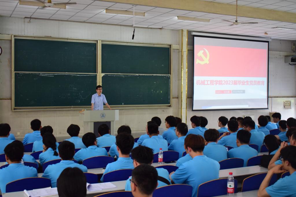 随后,学办主任杨金鑫针对毕业生党员进行了离校教育。杨金鑫表示党员同志在新的人生阶段应当继续发扬的优良传统,始终保持党员先进性和纯洁性,不断提升自己的思想政治觉悟,做到知行合一,以行动践行入党誓词,为实现中华民族伟大复兴的中国梦贡献自己的力量。