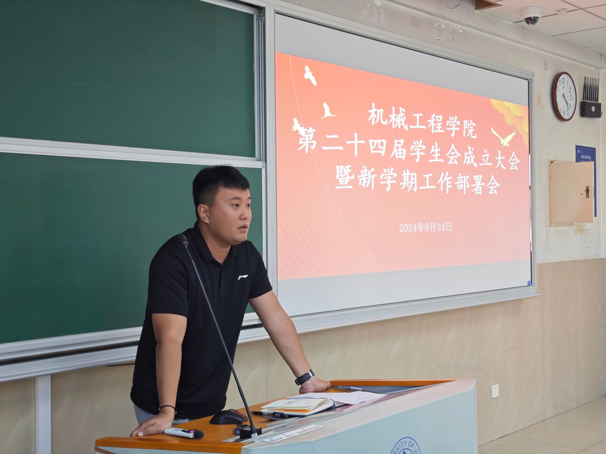 随后,薛浩详细部署了新学期学生会各部门的工作重点和计划安排。他强调,新学期学生会要围绕校、院两级团委的中心工作认真筹划部署,要将基础性工作做稳、创新性工作做实。薛浩分别对思想政治引领与基层团组织建设、创新创业工作、社会实践及志愿服务、校园文化活动以及宣传工作进行了详细解读,要始终坚持以目标为导向,在过程中提高,师生共同努力让学院共青团工作再上新台阶。