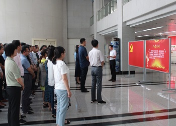 宣誓活动结束后,同志们参观了学院党史教育长廊,宁大千老师从党的一大到党的十九大,对党的奋斗历程进行了讲解。